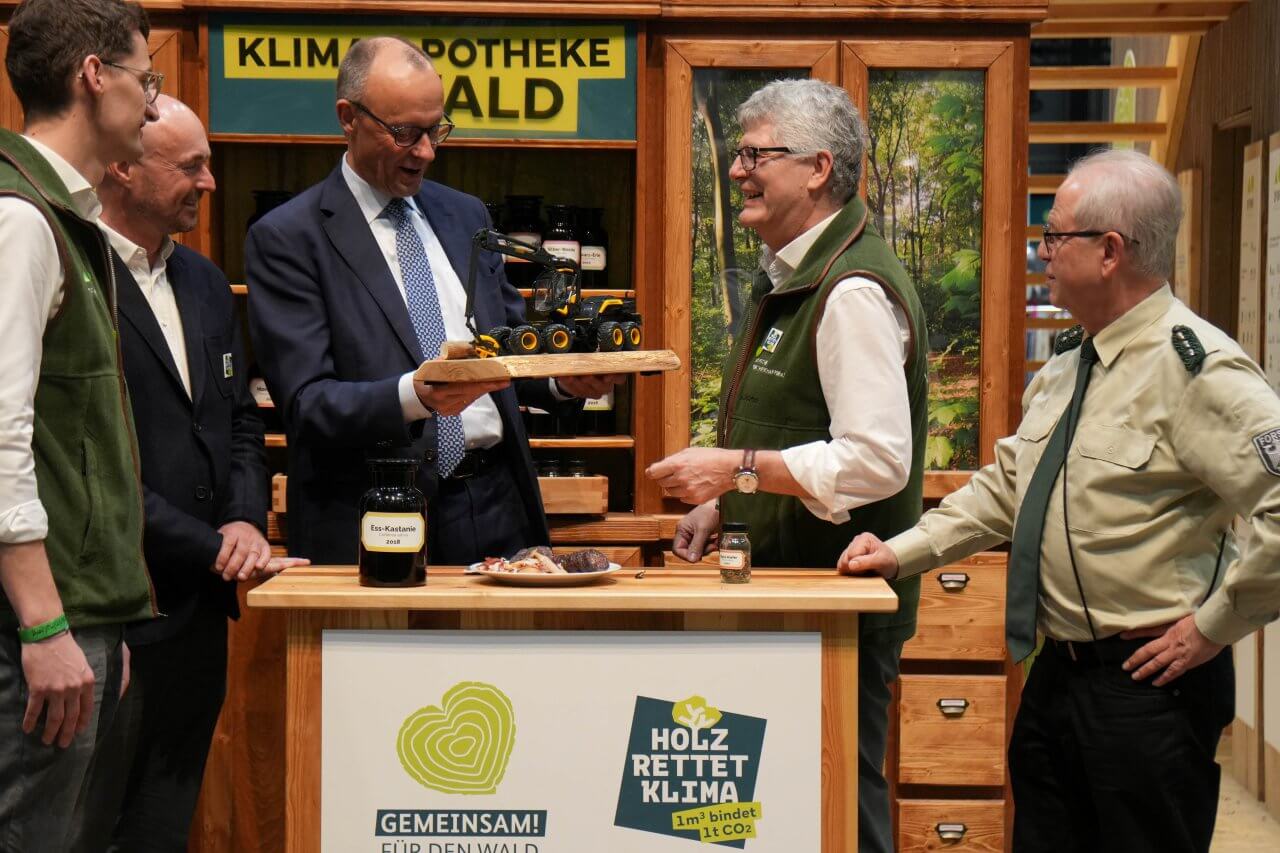 Berlin, 20. Januar 2026 – Am heutigen Dienstag besuchte Bundeskanzler Friedrich Merz den Branchenstand des Deutschen Forstwirtschaftsrates (DFWR) auf der Grünen Woche in Berlin. Der Bundeskanzler informierte sich über die aktuellen Herausforderungen und Zukunftsfragen von Wald, Forstwirtschaft und Holzverwendung in Deutschland.